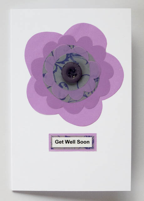 Purple Get Well Soon Flowe Card £1.75 Published August 10, 2013 at 460 × 640 in Wedding stationery Purple Get Well Soon Flower Card A6 card with handmade purple vellum flower, purple button centre. Insert reads ‘with love’