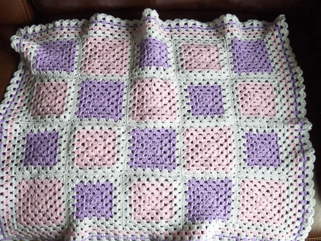 Pink and Lilac Crochet Baby Blanket £15 Published February 9, 2015 at 640 × 480 in Family Birthday Pink, Lilac, White Crochet baby Blanket Pink, lilac and white crochet baby blanket with scalloped style edge. Ideal for a pram, moses basket, or cot.