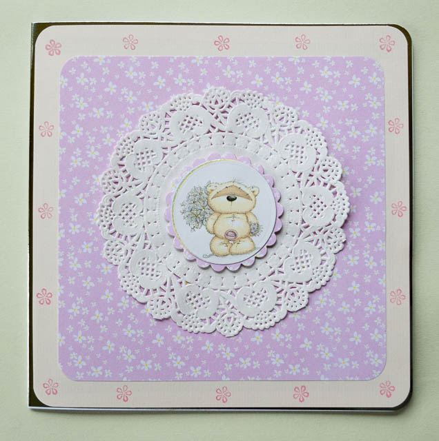 Large pink Doily new baby card £1.50 Published September 21, 2015 at 636 × 640 in Birthday Cards Pink Doily Card 7×7 square card with pink daisy papers, doily and glittered pink teddy bear centre. Card left blank for own message.
