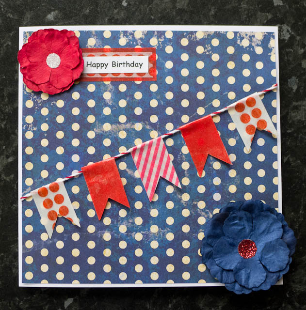 6×6 inch Red, White and Blue Bunting BIrthday card £2.00
