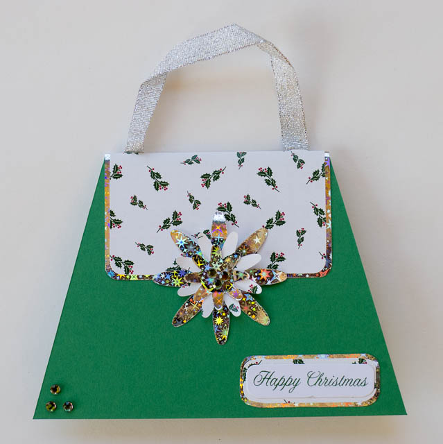 A6 Green Holly Christmas Handbag card £2.00
